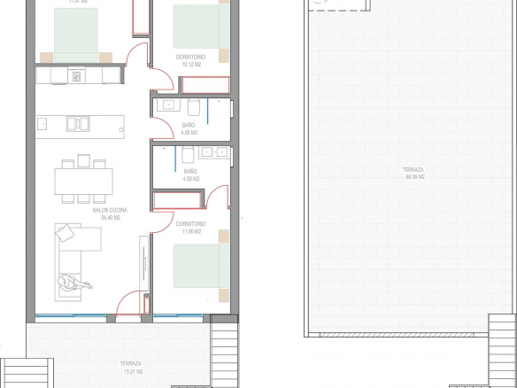 W ofercie znajdują się apartamenty na parterze z prywatnymi ogrodami i tarasami oraz apartamenty na piętrze z przestronnymi tarasami i prywatnym solarium. Każde mieszkanie obejmuje 3 sypialnie i 2 łazienki (w tym jedną en suite), a całość została zaprojektowana w nowoczesnym stylu, z użyciem materiałów najwyższej jakości i dbałością o detale.