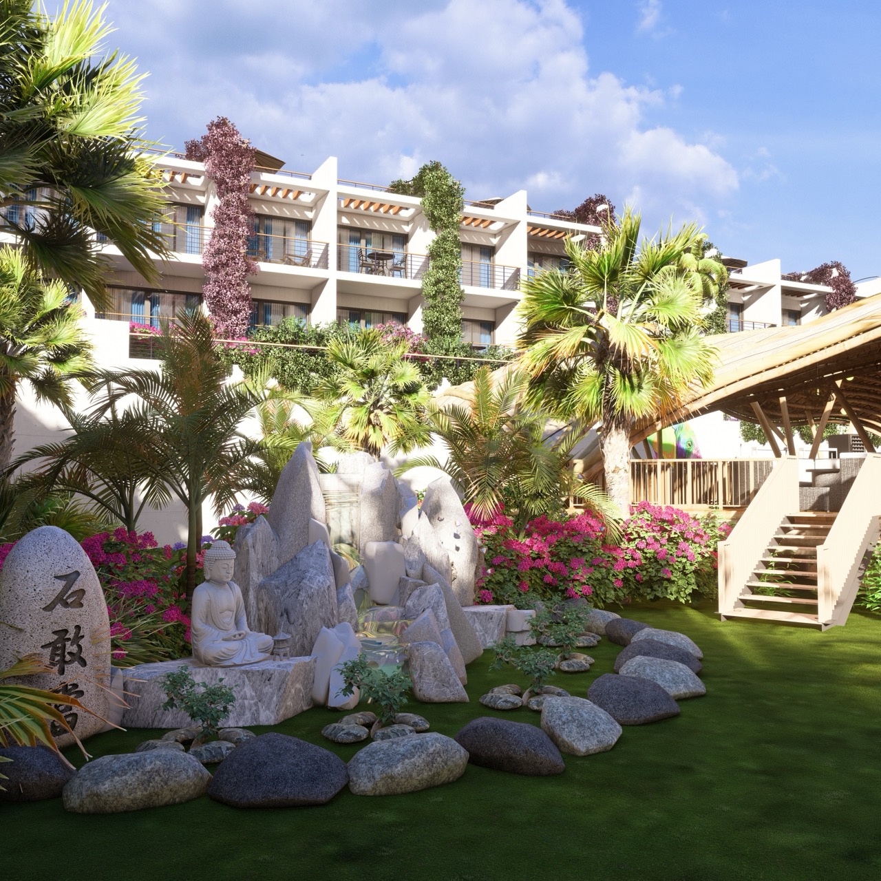 Ponadto kompleks oferuje pełną infrastrukturę: kilka basenów, sztuczna wyspa z basenem inspirowana Tajlandią, restauracja, spa, klinika, siłownia, kort tenisowy i wiele innych Zapewnia możliwość połączenia komfortowego stylu życia z dbałością o zdrowie.