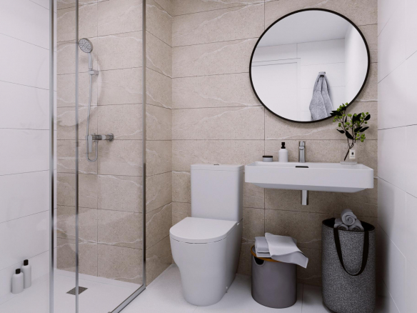 Każdy apartament posiada w pełni wyposażoną kuchnię z płytą ceramiczną, okapem i piekarnikiem, system podgrzewania wody w technologii aerotermicznej, gładkie białe ściany i sufity, a także drzwi i okna PVC z podwójnymi szybami. Dodatkowo w mieszkaniach zainstalowano klimatyzację z funkcją grzania i chłodzenia oraz w pełni zabudowane szafy w każdej sypialni.