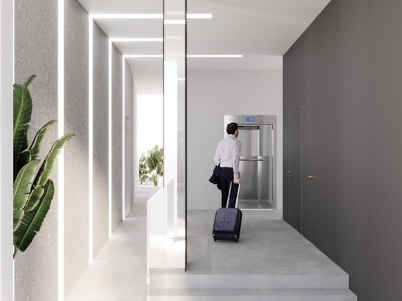 • wygodne połączenie na dach windą i schodami