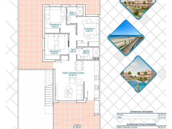 Nowa, ekskluzywna inwestycja w Pilar de la Horadada na Costa Blanca to idealna propozycja dla osób poszukujących nowoczesnego domu blisko morza. Położona zaledwie 2 km od plaży, oferuje szeroki wybór nieruchomości z 3 sypialniami i 2 łazienkami, a w cenie każdego z domów uwzględniono prywatne miejsce parkingowe. Cały kompleks wyróżnia się przestronnymi częściami wspólnymi, takimi jak duży basen, zadbane ogrody oraz strefa zabaw dla dzieci, które zapewniają komfort i przyjemność całej rodzinie.