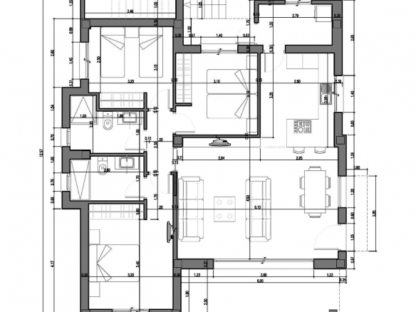 Projekt umożliwia pełną personalizację wnętrza, dzięki czemu możesz stworzyć przestrzeń idealnie dopasowaną do własnego gustu. Do wyboru są różne style i kolory drzwi wewnętrznych, szaf, płytek podłogowych oraz okładzin łazienkowych i kuchennych. Klient sam decyduje o kolorystyce ram okiennych, armaturze, elementach wyposażenia oraz designie kuchni, którą można zaprojektować od podstaw – wybierając układ, kolory oraz rodzaj blatów.